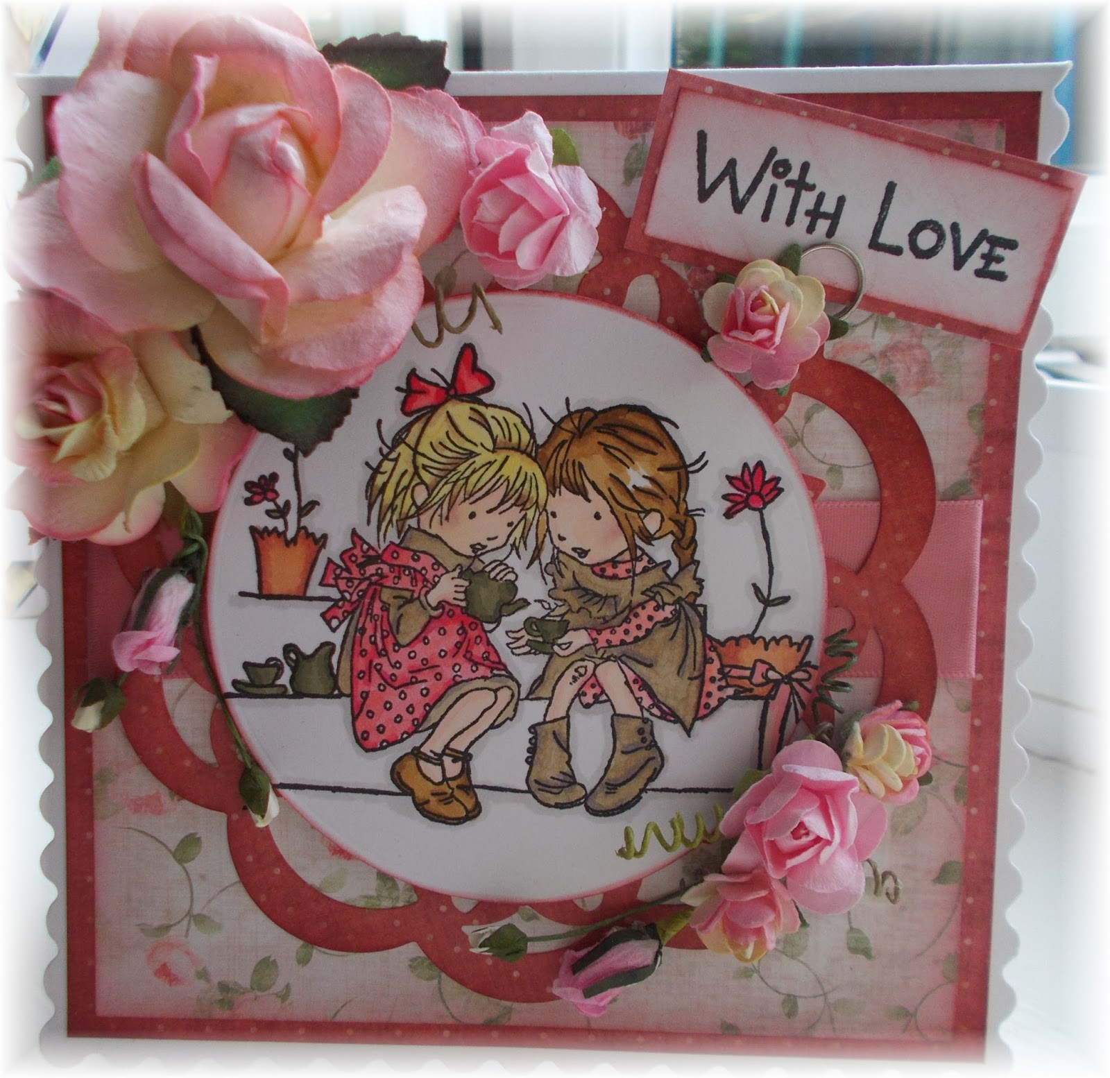 I just loved using the LOTV stamp,the papers were from them as well and are from the country Lady pad they also coordinate with the Country Gent pad. It has lots of polka dots plaids and florals so I was in Paper Heaven.